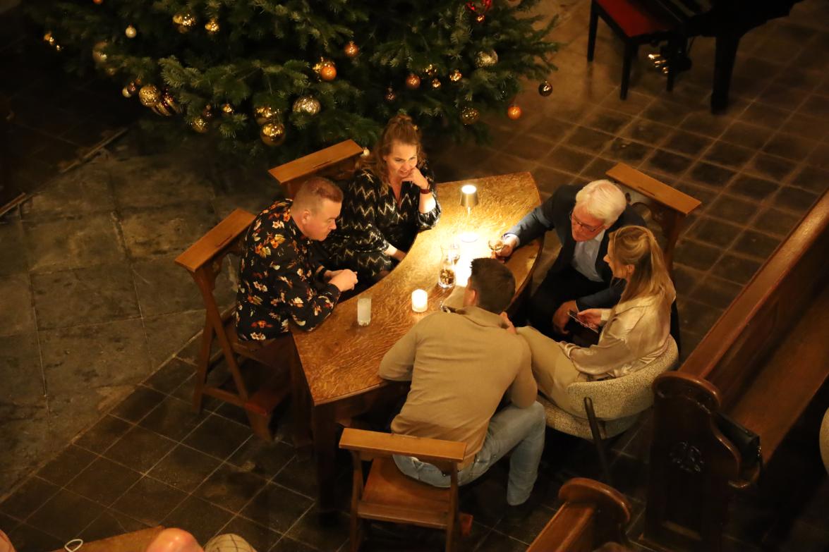 De Luciakerk in Ravenstein werd als locatie bijzonder goed ontvangen. Gastheer Cor Strik deelde het verhaal achter het bijzondere project en de transformatie van kerk tot gastvrije ontmoetingsplek. Voor het culinaire gedeelte tekende Jeroen van de Berg van ‘Lekker van Jeroen’, die de aanwezigen verraste met een smaakvol en feestelijk diner.